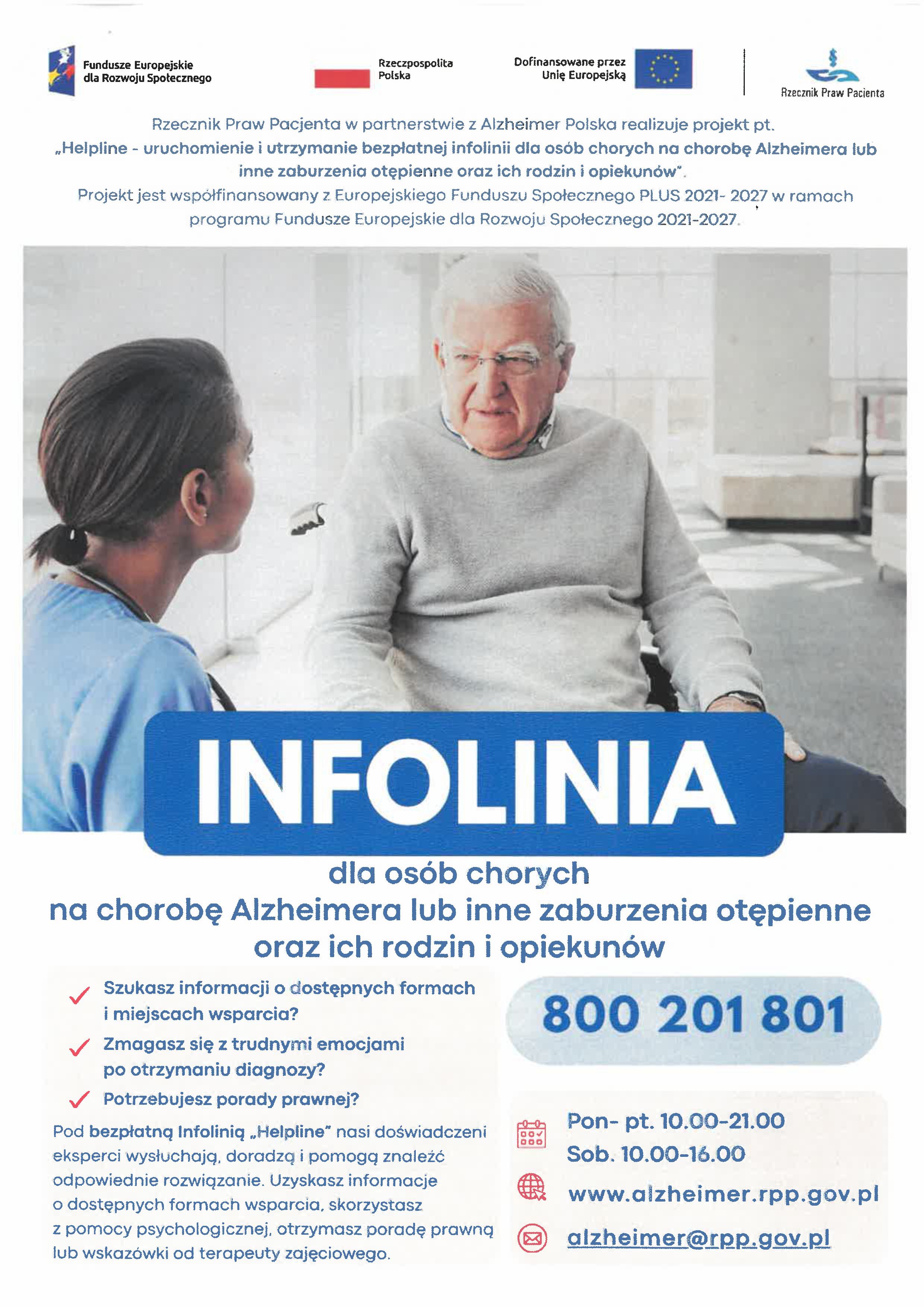 Infolinia jest skierowana do osób chorych na chorobę Alzheimera oraz inne zaburzenia otępienne, a także do ich rodzin i opiekunów.